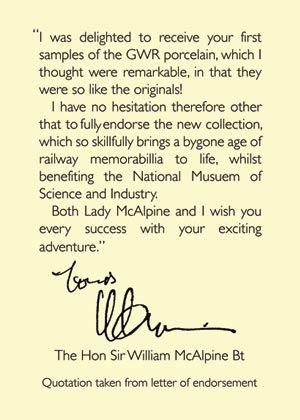 As one of the UK’s best known and most respected supporters of the railway preservation movement as well as an avid collector of memorabilia we are delighted to receive support for making these products available from Sir William McAlpine to whom we are deeply indebted.